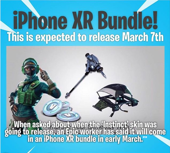 Zapytany o skórkę „Instinct” pracownik Epic Games odpowiedział, że pojawi się w zestawie dla Iphone XR, który nadejdzie na początku marca.